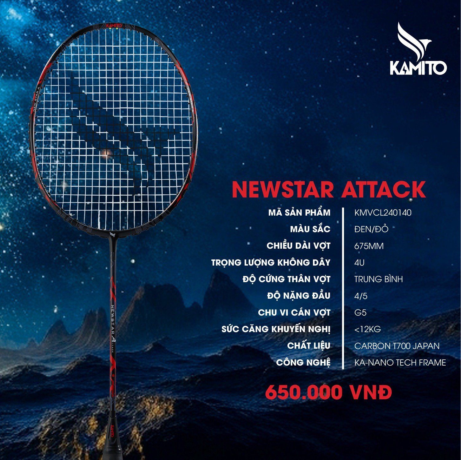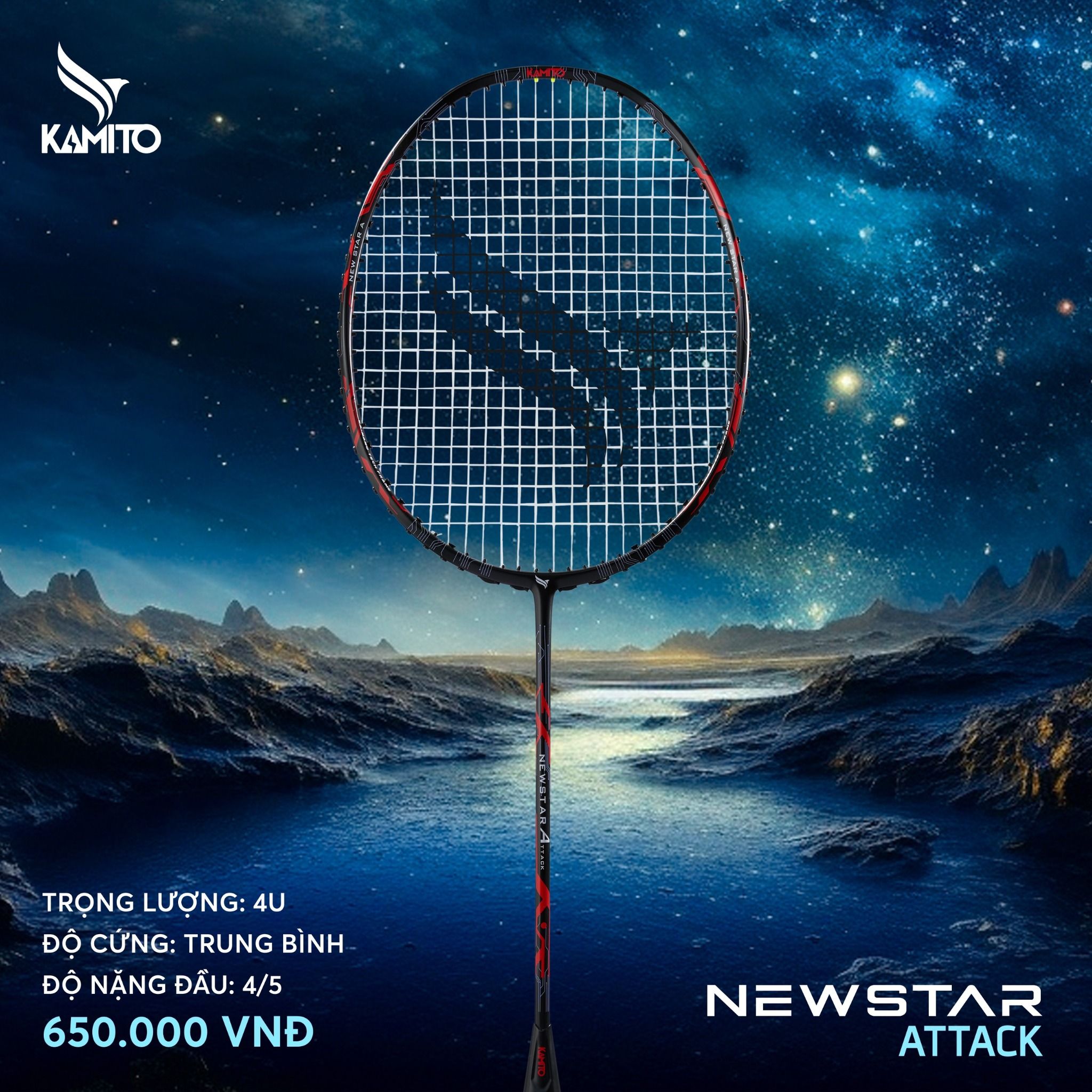 Vợt Cầu Lông Kamito Newstar Attack Chính Hãng - Uy Lực Tấn Công